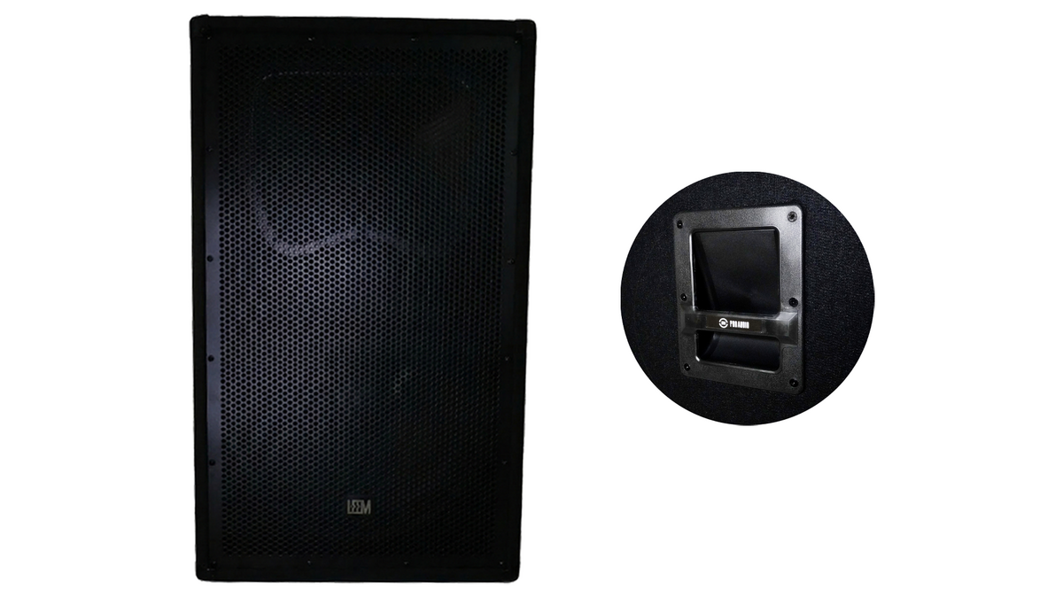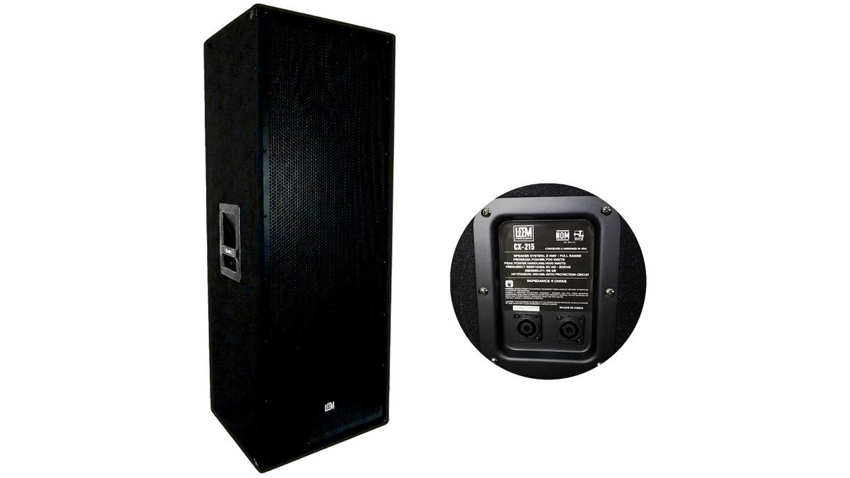Bafle profesional Leem CX115 de 15" y 2 vías. Ofrece una potencia de 400W con diseño de rango completo y circuito de protección para componentes. Gabinete robusto con rejilla metálica de alta resistencia, asas laterales ergonómicas y entrada para montaje en pedestal. Ideal para refuerzo sonoro profesional.