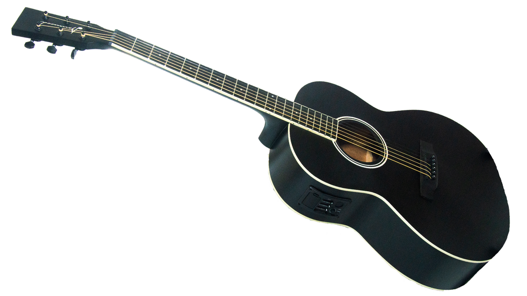Madera de caoba con herrajes negros y cuerdas de acero
