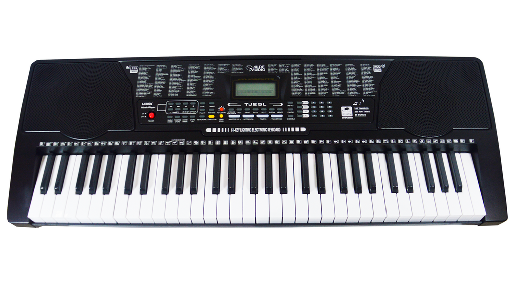 Teclado electrónico de 61 teclas Pantalla LED, 255 timbres/ritmos y 24 canciones demo.