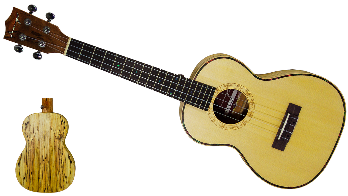 Cuerpo en madera de Zebrano y tapa en madera de Picea.